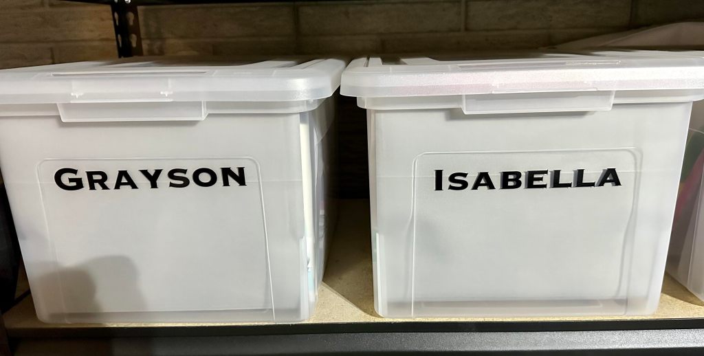 Our kids are our life. But, as you all know, they make a lot of stuff! You can’t be responsible for keeping everything. After my husband and I go through our children’s paperwork from school each week, we decide if we are saving any of it. Sometimes I’ll save it in my “ongoing storage” (see my article on the Bag Method for more info: https://organizedchaos4bus.com/2023/02/08/the-bag-method/ ), if it’s an assignment or test that they struggled with and we need to work on at home. If it’s attached to a memory, I’ll save it. For instance, one year when my daughter was in 2nd grade she spelled “avedl” on a spelling pre-test when the correct word was “every”. Now, this was hilarious to my husband and I because she’s incredibly bright. So, the fact that she had a brain fart that big was gut busting to us. That pre-test was saved and even now, we like to tease her about it, or her to us. Another example, my son has struggled with learning. He has some speech issues that really slowed his development. So, once in Kindergarten he wrote the alphabet with really neat handwriting and I saved it because it was a huge milestone for him. What you keep will be completely decided by you… what is most special?? Now, when my children complete projects I typically just take a picture and toss the project. It sounds harsh, but it’s not. We still have the memories and even the visual, just not the project itself. Now, everything I keep gets stored by child and by year in these file boxes. https://amzn.to/406YuP7 My daughter is 10 so we are on our 11th folder. If they made me a bracelet or something small (but not paper), I keep it. I have a large tote where I store their non-flat items.