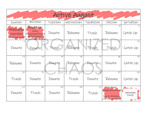 I’ve named August’s calendar “Active August” because our items are going to be on the move this month!! I’ve wrote “donate”, “rehome” and “trash” on every day of the month. If you are on a DONATE day, you must find one item to donate. If you are on a REHOME day, you must find one item that needs a better home than the one you’ve given it OR maybe you haven’t given it a home at all! If you are on a TRASH day, you must find one item that can no longer serve anyone and needs to be pitched.