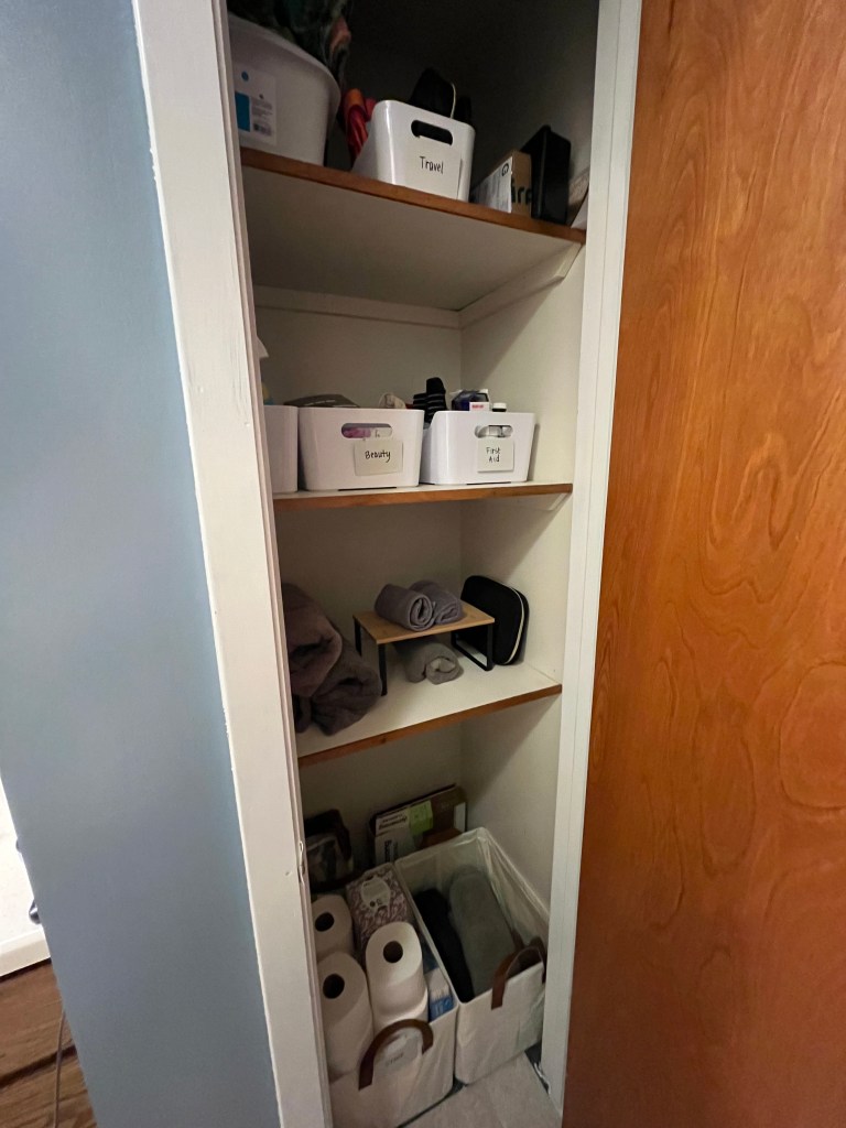 I actually just brought them because I had them. I didn’t actually know I’d need them. But they were perfect for storing her extra toilet paper and towels.