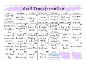 I’ll go into these principles in more detail (I’ll just edit this article later this week), but in the meantime here is April’s calendar. We are going to use the April calendar to help us on this journey to take back our life. The calendar is broke up into 3 sections (for our three principles). The first 10 days will be tasks related to decluttering, the second 10 days on simplifying and the final 10 days on living intentionally.