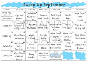 For September we are doing some deep cleaning tasks. Let’s head into Q4 with some of those big jobs crossed off our list! Good luck! -Aud