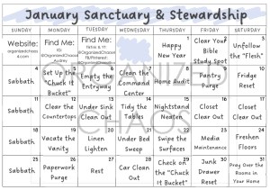 Thank you, Audrey! God recently placed on my heart the need to prioritize making my home into a sanctuary and how I steward the resources he provides. Then, you publish this calendar! I was floundering a bit, and this helps so much.