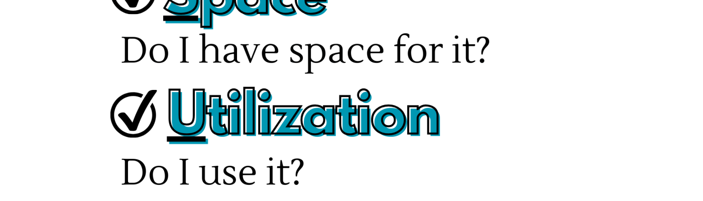 S is for space: Do I have space for it? The item doesn’t just need to be able to fit inside your house, it needs to have a designated home. If it’s sitting on the counter because you can’t fit it in the drawer, you don’t have space for it. If you have to shove it into the cabinet and close the door quickly so it doesn’t fall out, you don’t have space for it.